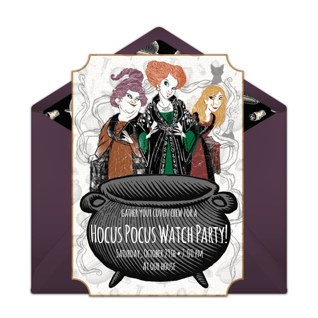 Watching Hocus Pocus is a tradition in many households - so why not make it a special event! Invite your friends to arrive in their best Witch attire. Make your own decorations, like a "Sanderson Cottage" sign that you can hang by the door, some brooms on the wall with a "Parking" sign, and an "It's All Just a Bunch of Hocus Pocus" sign by the buffet. Serve your beverages from a Cauldron, make some Sand"Witches", and create theme-based snacks like brooms made of pretzel sticks and cheese strings. Then play Hocus Pocus and Hocus Pocus 2 back-to-back!