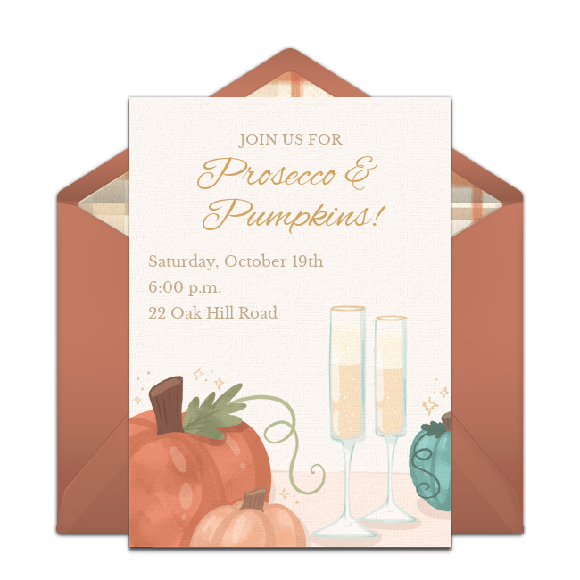 Picking out the perfect pumpkin can be a tough task: do you choose the perfectly round one or the slightly lopsided, lumpy one? Although they may eventually be turned into pie or carved into a scary face, trips to the pumpkin patch are another activity that fall wouldn’t be complete without. Gather friends with this cute pumpkin carving party invitation or gorgeous Pumpkins & Prosecco invitation. Finally, regardless if you host a party or not, be sure to check out these advanced pumpkin carving tips!