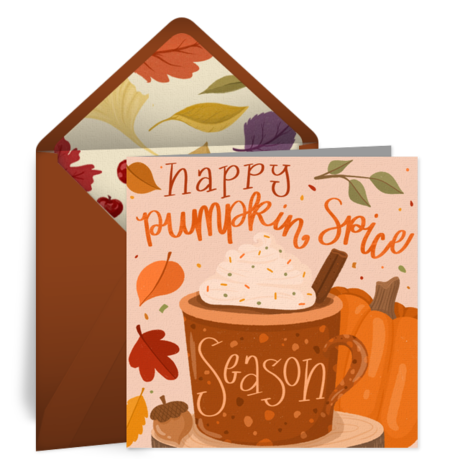 Hot apple cider, pumpkin spice lattes, and mulled wine are a few seasonal beverages that will warm your bones when the crisp weather hits. These comforting drinks smell amazing and taste even better! Treat yourself to your favorite fall beverage then send this Pumpkin Spice Season eCard to share cozy autumn greetings to friends and family.