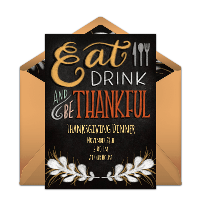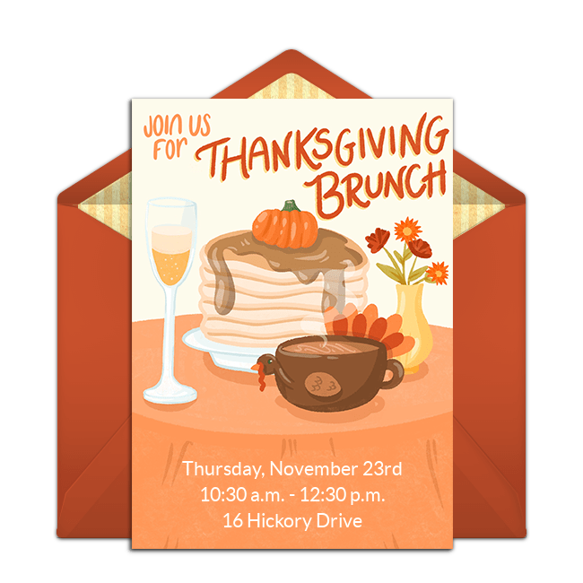 No fall list would be complete without the biggest of fall holidays — Thanksgiving! Whether it's a typical holiday dinner, brunch, or Friendsgiving gathering, check out these Thanksgiving invitations and Thanksgiving celebration ideas for inspiration.