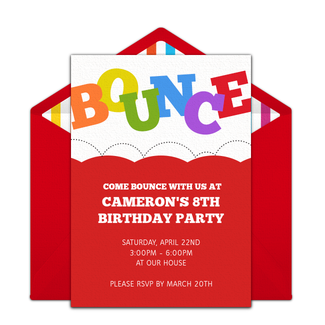 Remember when you were a kid and a bouncy house was the greatest part of a birthday party? Well, it still has that “wow” factor for eighteen year olds as well! Rather than the typical bounce house, however, rent an obstacle course, inflatable slide, or other inflatable that is more age-appropriate. This is a great way for guests to revert back to their childhoods when they didn’t have to worry about midterms, SATs, and college applications. Play upbeat music in the background to get the guests bouncing around and having a blast. Browse bounce party invitations to get started with your planning!