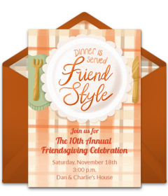 Before you even think about a menu, start your celebration off on the right foot with gorgeous Friendsgiving invitations you can customize and send from any digital device. Personalize your favorite Friendsgiving invitation, send by text or email, and gather RSVPs in minutes.