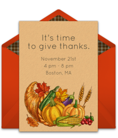 If you’re hosting family or friends at your home for turkey day this year and need a creative Thanksgiving theme for your celebration, look no further. Try one of these Thanksgiving theme ideas and matching Thanksgiving invitations to add a personal touch to your next gathering and build some new holiday traditions. Find your favorite Thanksgiving invitation online, add important event details, send by text or email, and gather RSVPs in minutes.