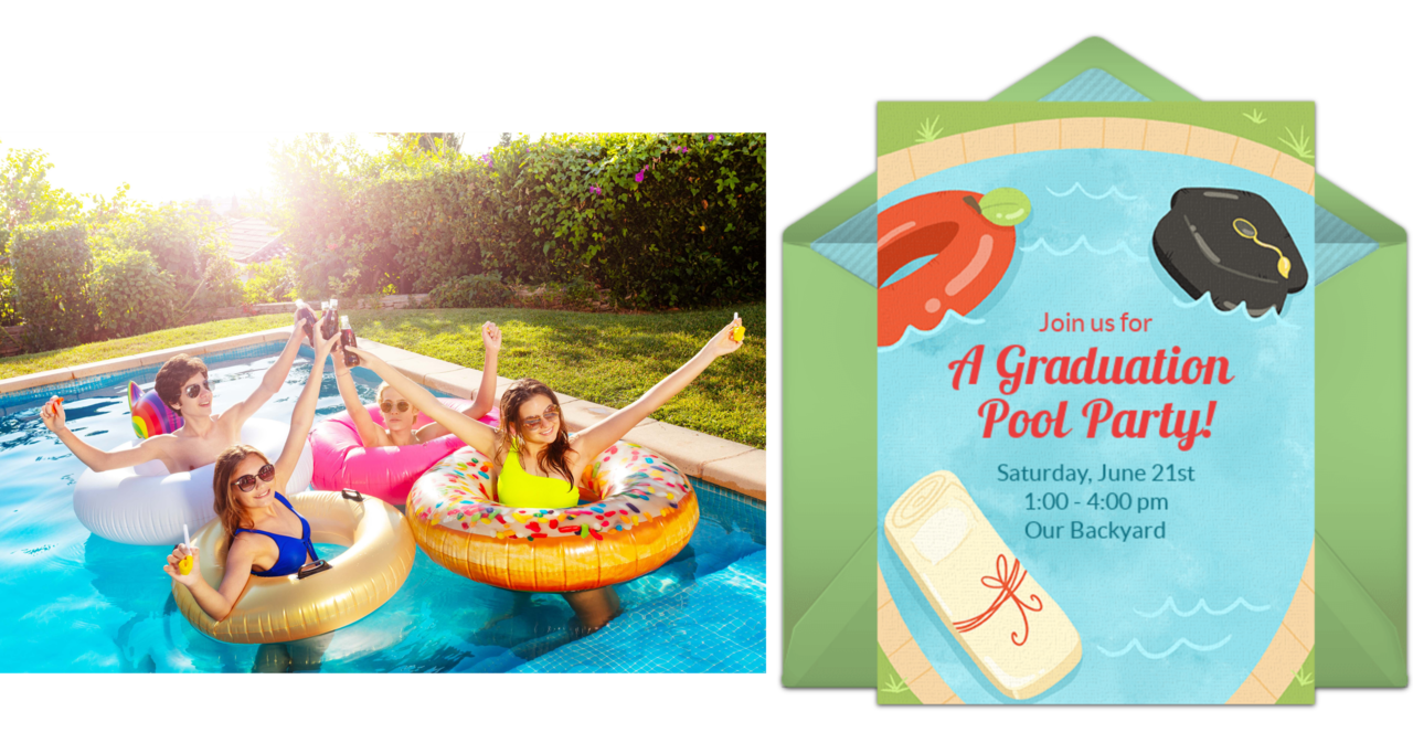 Did your little one finish preschool? Perhaps your graduate is moving on to middle school, high school, or college. No matter what their age, a pool party is a fun way to mark such a momentous occasion in their life. Send these graduation pool party invitations to share party details, set the stage for your celebration, and easily track RSVPs online.