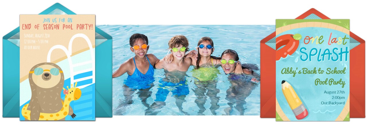 Say goodbye to summer with a pool party to mark the end of the season or the return to school. Email or text this End of Summer pool party invitation or this Back to School pool party invitation so guests can soak up the last bit of summer fun!