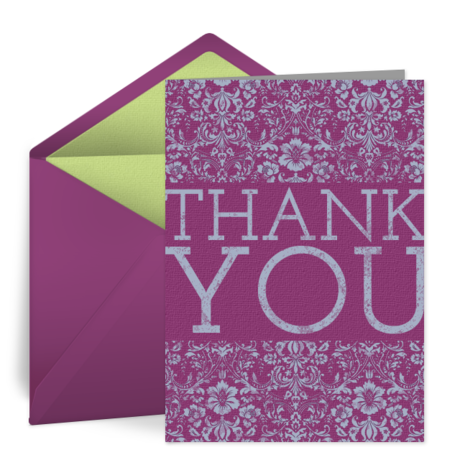 After the celebration, send Purple Thank You cards to let guests know how much you appreciate them attending. Personalize the eCards and send via text or email in minutes.