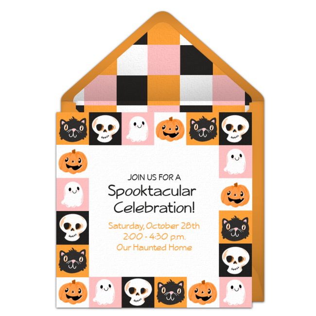 Send perfectly themed Halloween invitations that feature the black and orange color scheme and will appeal to kids. Don’t forget to remind your guests to wear their costumes! Free online invitations are the easiest, fastest way to invite guests to your party. Browse Halloween party invitations that can be customized in minutes, then deliver them instantly to guests by email or text!