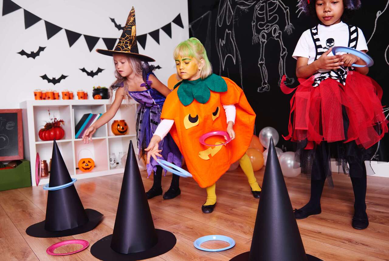 Incorporate black and orange themed games into your Halloween party! Play a ring toss game using witches' hats or pumpkins, Pin the Spider on the Web, or have a Monster Mash costume parade around your neighborhood or backyard!