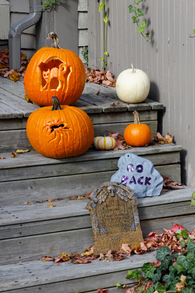 - Pumpkin Patch: Pumpkins are classic party decorations for Halloween because they work for any type of Halloween celebration. In particular, they work well outdoors. If you can't bring your party to a real pumpkin patch, bring the pumpkin patch to your party! Purchase bales of hay to put in the backyard. You can use them as seating and to display any pumpkin decorations you've created prior to the event. Have a mix of regular pumpkins, jack-o-lanterns, and mini pumpkins—some decorated already and make some available for guests to decorate at the party. Another fun touch to create the feel of a pumpkin patch is to add pretty flower arrangements and make your own scarecrow!