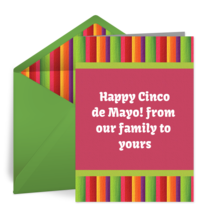 Finally, if there are loved ones who can't attend your party, be sure to send them greeting cards for Cinco de Mayo so they don't feel left out. Personalize the written message inside the eCard and deliver it instantly from any digital device.