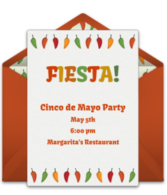 If you're planning a fiesta, send out Cinco de Mayo party invitations to let your guests know the details of the event! Browse a variety of Cinco de Mayo invites that you can customize and deliver by text or email instantly.