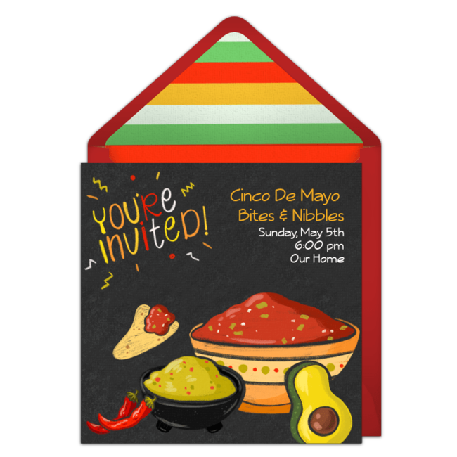 Send Invitations: Customize Cinco de Mayo party invitations to set the stage for your event and share important information with guests. Deliver invitations by text or email and easily manage RSVPs online.