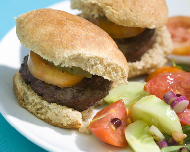 Combine the ground beef, pepper, salt, fresh pepper, minced garlic and dried onion flakes in a bowl. Make mini beef patties with your hands, about the size of a palm. Cook the patties on a grill pan or grill at medium to medium-high heat for 8 minutes (4 minutes each side) or until cooked to your desired temperature. Remove patties and set aside for assembly later.