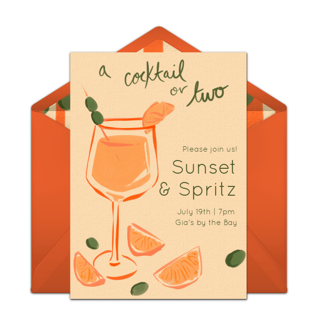 Finally, be sure to let guests know about any activities planned in an online cocktail party invitation you can send by email or text. Choose from a wide range of designs and cocktail party themes and customize your favorite invite in minutes.There's nothing like a little friendly competition, so gather your friends together for a night of cocktails, games and lots of laughs.