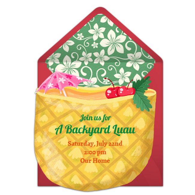A luau theme is perfect for a summer cocktail party when hosted outdoors. Send luau cocktail party invitations then create an island oasis by decorating with palm trees, tiki torches, leis and candles. To make this theme truly come to life, play a mix of traditional and contemporary Hawaiin music during the party. Serve fruity cocktails and island-inspired food to complete the luau theme.luau-cocktail-party-invitations.png407.99 KB