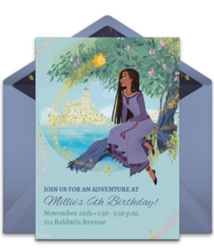 Start your celebration off on the right foot with gorgeous Disney's Wish invitations that feature Asha, friends, family, and – of course – Star. Customize your favorite digital invitation with important event information, send by text or email, then easily manage RSVPs.