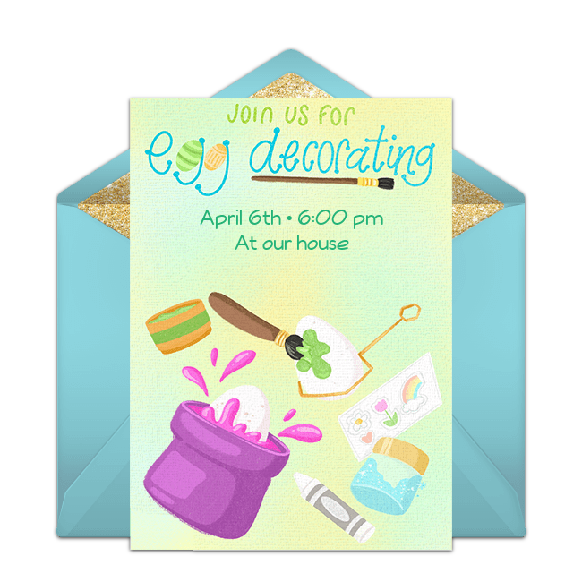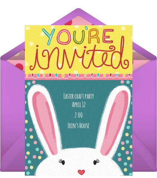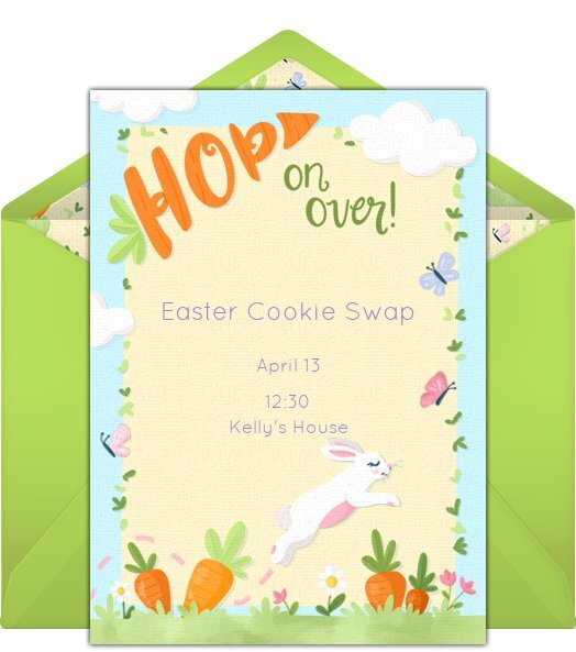 • Create your event on Punchbowl and send free Easter party invitations! Customize the invite however you want and use it to tell people what to bring or what the menu will be.