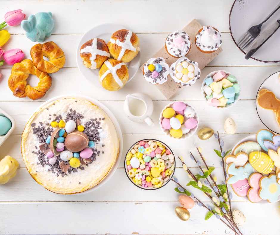 • Display Easter party decorations like pastel-colored streamers, balloons, floral arrangements, and decorative centerpieces.