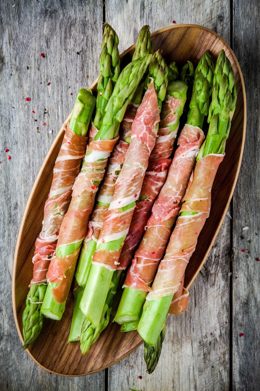 - Prosciutto-wrapped asparagus: For this dish, simply blanch, steam, or grill some asparagus and wrap them individually with slices of prosciutto. For more flavor, add a little olive oil and sprinkle with some black pepper and salt to taste.