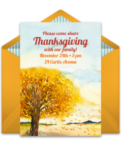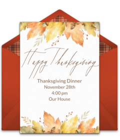If you're hosting this year, send a gorgeous Thanksgiving invitation online to set the stage for your event and share important event details. Customize your favorite invitation, send by text or email, and gather RSVPs in minutes. Happy Thanksgiving!
