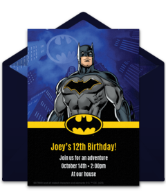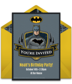 To kick things off, send online Batman invitations to help set the stage for your party. Customize your favorite invitation with important event details, send by text or email, and easily gather RSVPs online. Next, decorate your space with the Caped Crusader’s main colors: gray, black or dark blue, and yellow. If you happen to have bat decorations leftover from Halloween, hang those from the ceiling with a clear fishing line. Finally, have plenty of Batman masks and capes on hand so kids can really get into character.