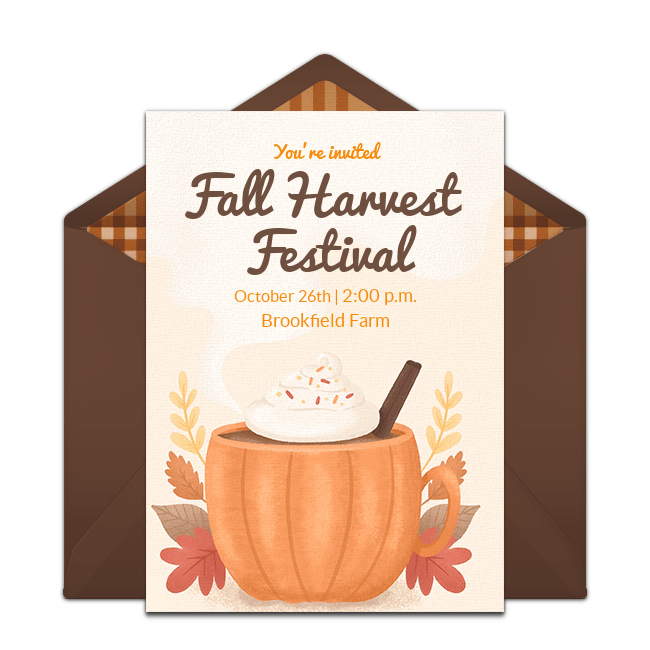 Plan a fall harvest party for any age group. Visit Punchbowl to select a fall invitation with symbols of autumn, such as colorful leaves and acorns, pumpkins or apples. Plan craft projects for the fall harvest party and bake apple pies, create autumn leaf garlands, or make fall jewelry. Arrange activities which include fall harvest bingo, bobbing for apples, or even an cranberry picking extravaganza. Serve fall classics such as apple cider, roasted pumpkin seeds, and cider donuts.