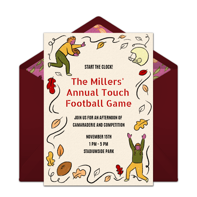 Throw a football party for family, friends and football fans. Select a fall football themed invitation to send to your guests. Decorate the party with your team’s colors, mascot and football-inspired decorations. Serve food such as wings, chips and dip, pizza and deviled eggs. Entertain guests throughout the party and challenge them to throw a football through a hula hoop. Award prizes to the winners.