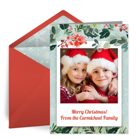 You can also send photo Christmas cards online by uploading a favorite picture. This is a great way to show everyone how much the kids have grown or share a favorite family memory from the past year.