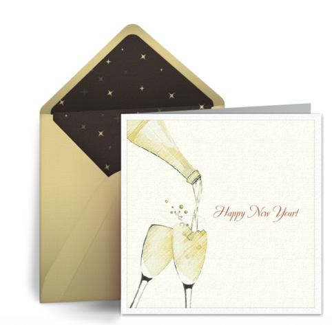 - Friends: Reconnect with long lost friends, or keep in touch with friends you see on a regular basis. Choose classic happy New Year eCards, like the champagne New Year's ecard featured above, suitable for a variety of different tastes and personalities.