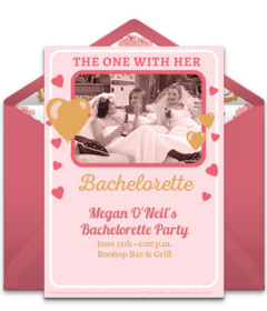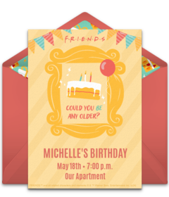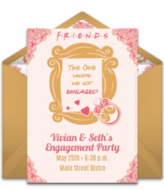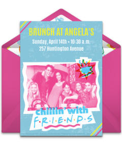 To start, send Friends themed party invitations by text or email to share important event details with guests and easily manage RSVPs online. Customize retro Friends invitations featuring the whole gang, Friends themed birthday party invitations with Monica’s peephole frame, or Friends coffee hour invitations that incorporate elements from everyone’s favorite coffee shop.