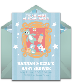 You can even celebrate life’s major milestones with a Friends engagement party invitation (aptly titled “The One Where We Got Engaged”); a Friends themed bachelorette party invitation that features Monica, Rachel, and Phoebe dressed in wedding gowns; and a Friends themed baby shower invitation with a liner that incorporates lobsters, a turkey wearing sunglasses, and other fun Friends elements diehard fans will appreciate.