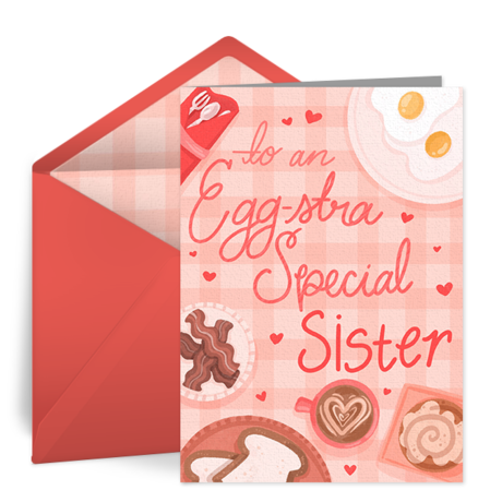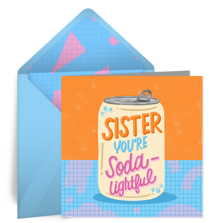 Let your sister know she’s soda-lightful with this Soft Drink Mother’s Day card or tell her she's egg-stra special with this Brunch Mother’s Day card