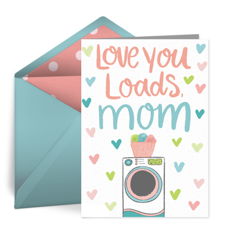 Let Mom know she's a "big dill" with this Pickle Mother’s Day card or tell her you "love her loads" with this Laundry Mother’s Day card.