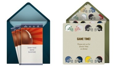 The teams have already secured their spots in the Big Game, so secure yours as "MVH" (Most Valuable Host) by planning your party through Punchbowl. Start by sending a free digital invitation to your starting roster of guests. You can customize the colors to match your team and play around with fonts, envelope liners, rubber stamps, and postage. You can even upload your own image to a photo card to include a team logo or picture of your favorite player on your invitation.