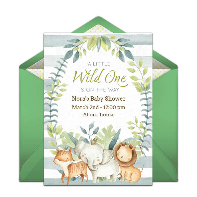 Go wild with a fun animal baby shower theme! From woodland creatures to jungle animals, this theme works well for a gender-neutral baby shower. Start with an online animal baby shower invitation to set the tone of the celebration, and continue it with coordinating centerpieces and favors. Have a cake decorated to match the theme, or decorate individual cupcakes with cute animal faces!