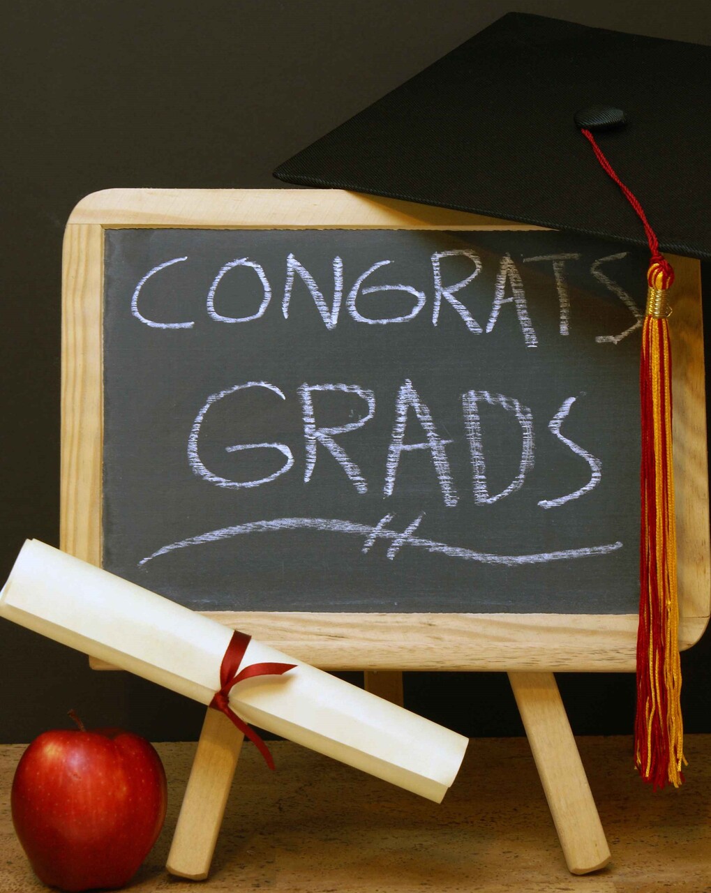 - Tabletop Easels: A graduation table decoration that can be customized with special greetings or wishes to the graduate. You'll need mini tabletop easels (found at craft stores), chalk, parchment paper and ribbon in the graduate's school colors. Place an easel at each table with a piece of chalk. Roll up the parchment paper and tie with ribbon and glue to each easel. Give guests ideas of what to write or simply write a graduation wish.