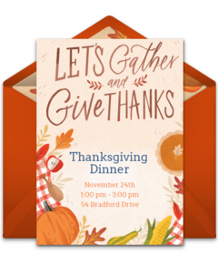 - Number of guests: Base the number of Thanksgiving guests on the amount of space you have in your house and your budget. Set a number limit for your guest list and then determine the list of names. Send a beautiful Thanksgiving invitation online to let everyone know the details of your event. Deliver instantly by text or email and easily gather RSVPs in minutes. Finally, keep your budget in mind while planning for Thanksgiving, and set aside a small slush fund in case you run over.