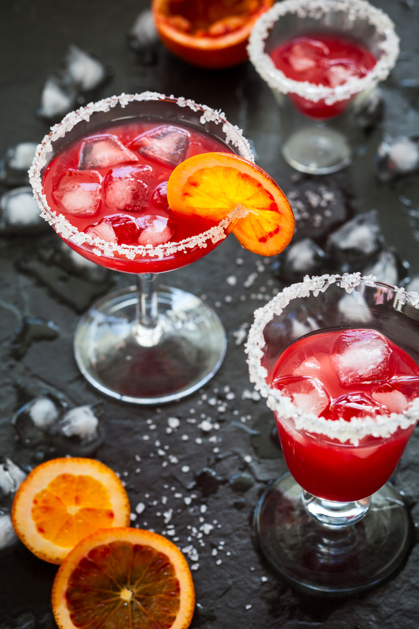 - Blood Orange Margarita: Concoct a blood orange margarita for a sweet, yet spooky Halloween cocktail. Moisten the rim of the margarita glass with a lime and dip the rim of the glass in margarita salt. Next, put crushed ice along with ½ a cup of orange juice, 2 ounces of tequila and 1 ounce of triple sec in a shaker. Shake well and pour. Add a slice of orange to the rim for a garnish.