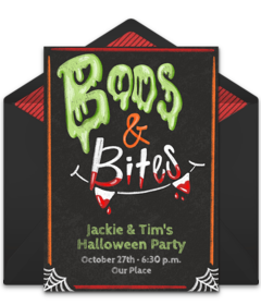 Halloween is a great time to get your friends and family together to eat some yummy fall foods. Before you start planning your menu, be sure to send online Halloween invitations to share important details with guests. Browse gorgeous Halloween invitations, customize your favorite, then send by text or email in minutes!
