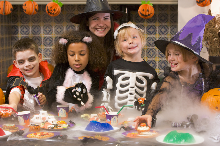 - Kids: Delight your kids with a Halloween bash for all of their friends. Decorate the house with ghosts and goblins. Serve yummy finger food such as mini hotdogs, mini pizzas, and chicken fingers. Bring the party to a close with a delicious dessert like “Worms in Dirt” (chocolate pudding, crushed Oreos, and gummy worms)!