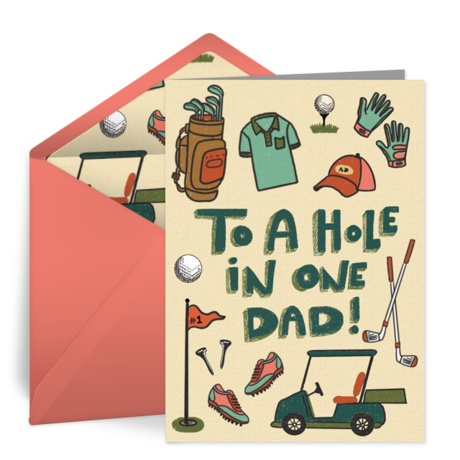 There’s no doubt that Dad will appreciate these Father’s Day quotes from his son inside this Great Dad card, Like Father Like Son card, or Hole in One card.