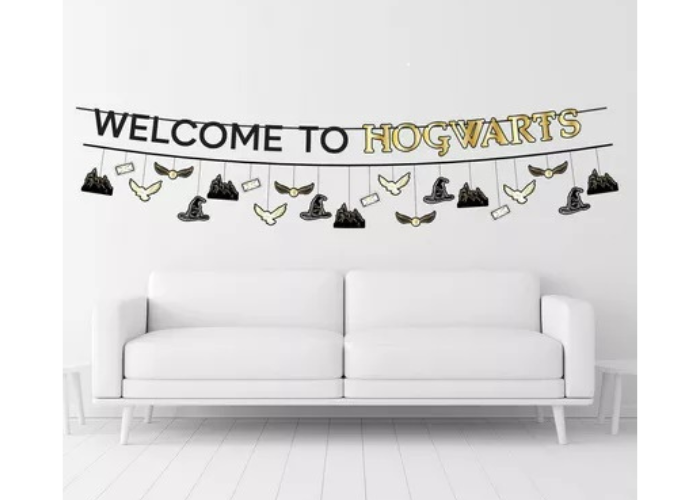 Create themed signage throughout your party space with colorful poster board, markers, and lots of glitter for an enchanting look. Place a "Platform 9 ¾" sign on your front door so guests can get ready to transport themselves to Hogwarts. Inside your home, greet your guests with a “Welcome to Hogwarts” sign.