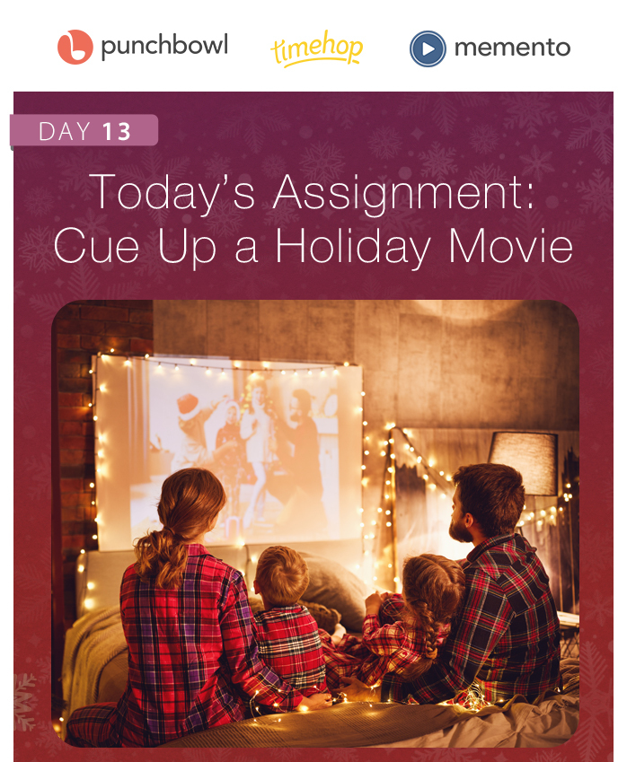 The 25 Days of Holiday Memories is a collaboration from Punchbowl®, Timehop® & Memento® where we help you get organized and make the most of the holiday season. Sign up here and get daily assignments delivered to your inbox.