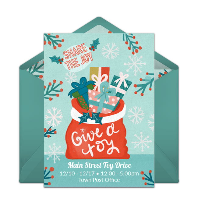 Next, you'll want to communicate your plans for a donation party through your invitation. Find the perfect online invitation for your event and customize it with important details then send it by text or email instantly. Be sure to clearly state your wishes and let all of your guests know what they can do instead of giving a gift. Some suggestions for "no gifts please" wording include: