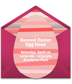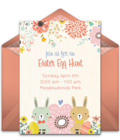 • Step 2: Invitation: Send online Easter invitations to set the stage for your egg hunt, get a headcount, and communicate with guests. Find your favorite design, customize it with important event details, and send via text or email in minutes.