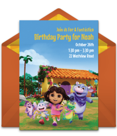 Throw a fabulous celebration for your girl or boy with a Dora theme. Get started by personalizing free Dora invitations today!