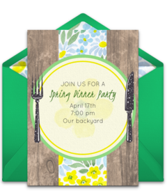 Set the stage for your event with beautiful, spring party invitations for birthdays, retirements, dinner parties, and more. Customize your favorite invitation, send by text or email, and easily manage RSVPs online.