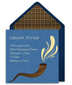 According to Jewish tradition, the shofar is used to make loud noises on Rosh Hashanah. This is meant to scare off demons and ensure a happy start to a New Year. For a joyous celebration, choose a Rosh Hashanah invitation with this theme.