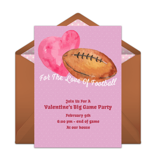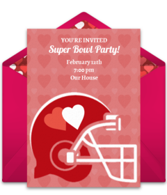 Let others know about your "No Boys Allowed" party and easily collect RSVPs online with digital Super Bowl invitations you can send right from your phone. Easily customize this Taylor Swift inspired invitation, or—if pink isn't your signature color—customize this cute Game Day Banner invitation. Bonus idea: If February 14th is right around the corner, consider hosting a combo Super Bowl-Valentine's Day party with the Heart Helment invitation or For the Love of Football invitation below.