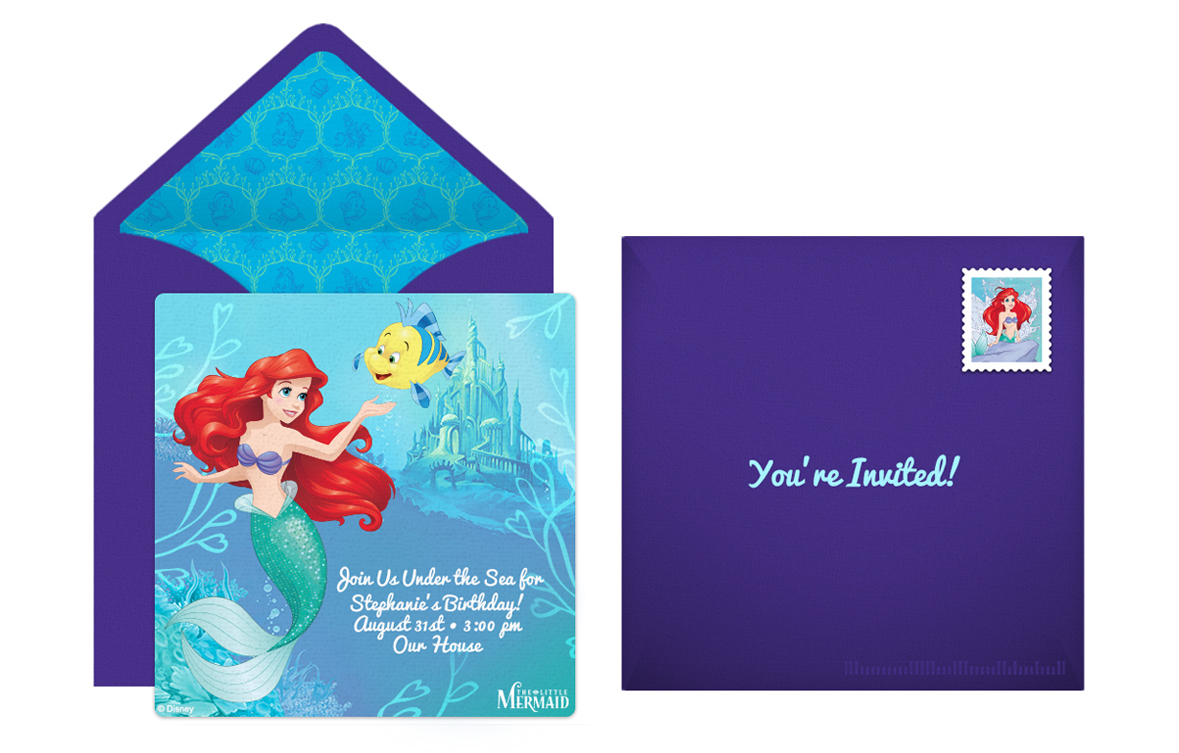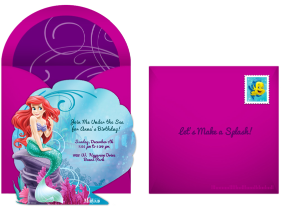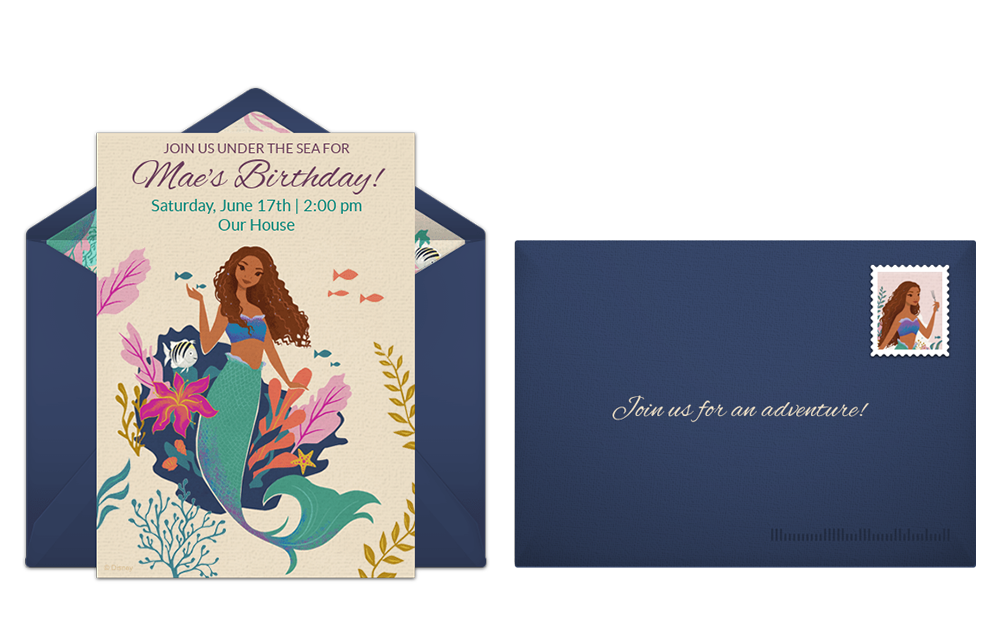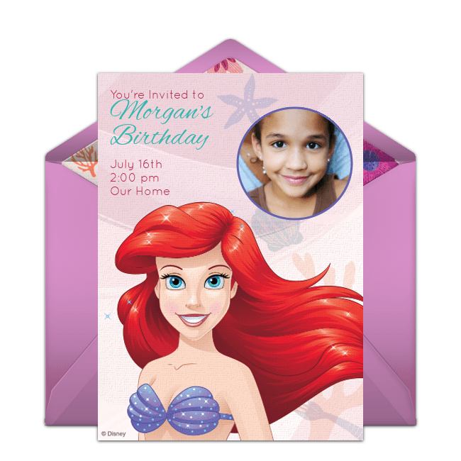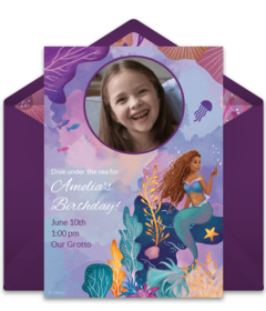 Send out this Little Mermaid birthday invitation to family and friends to invite them to the party. Or try out this gorgeous Little Mermaid online invitation that you can send for free. Don't forget to add a photo of your aspiring Ariel to your design!